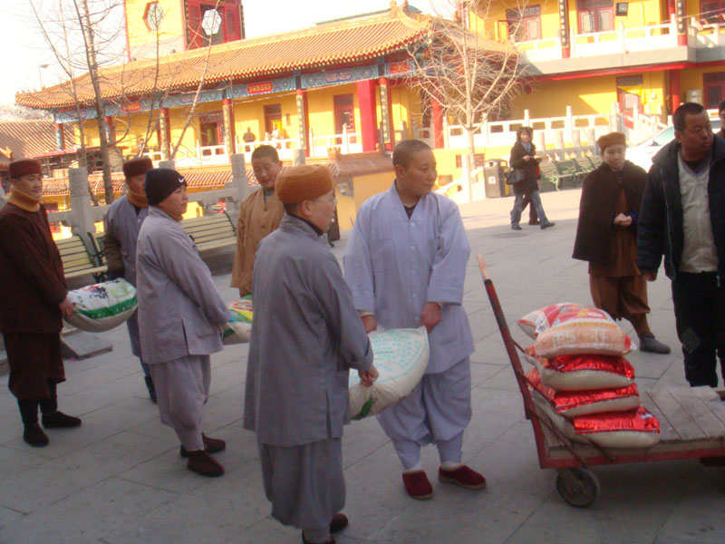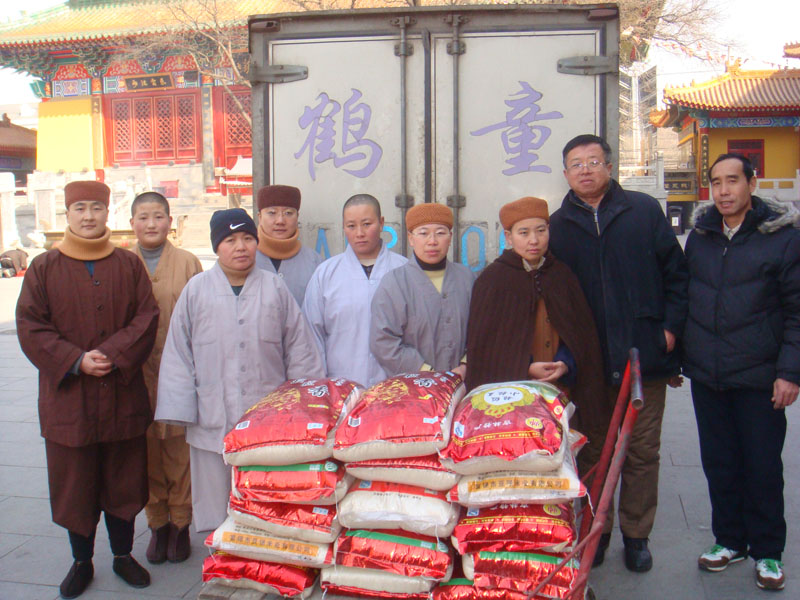 2009年1月15日,天津荐福观音寺在新春佳节即将来临之际向天津鹤童老年公寓的老人们捐赠大米50袋,计2500斤,价值4000元。知客海莲法师代表寺院出席了捐赠仪式。