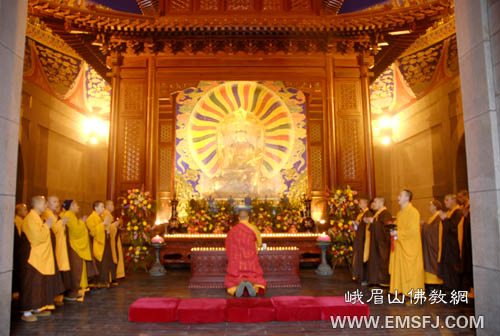 2009年1月25日,农历大年三十,峨眉山大佛禅院隆重举行普同供养法会,法会由峨眉山佛教协会会长永寿大和尚主法,引领大佛禅院两序大众,于诸佛菩萨座前上香设供,虔诚祈愿国运昌隆,风调雨顺;人民幸福安康,社会和谐进步!