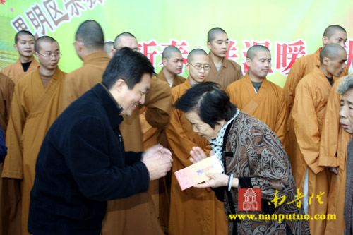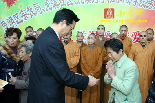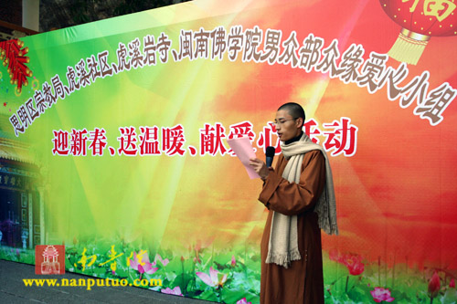 思明区宗教局、虎溪社区、虎溪岩寺和闽南佛学院男众部众缘爱心小组联合举办“迎新春、送温暖、献爱心”活动