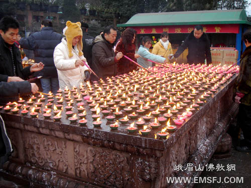 据万年寺的法师介绍,为满足信众的需求,万年寺特免费向信众游人提供供灯场地,信众游人可自带灯烛、清油等到万年寺供奉,也可在万年寺就地迎请灯烛等器具供奉,这一举措受到了广大香客游人的欢迎,今年腊月三十前来万年寺供灯的信众游人较往年增加不少。