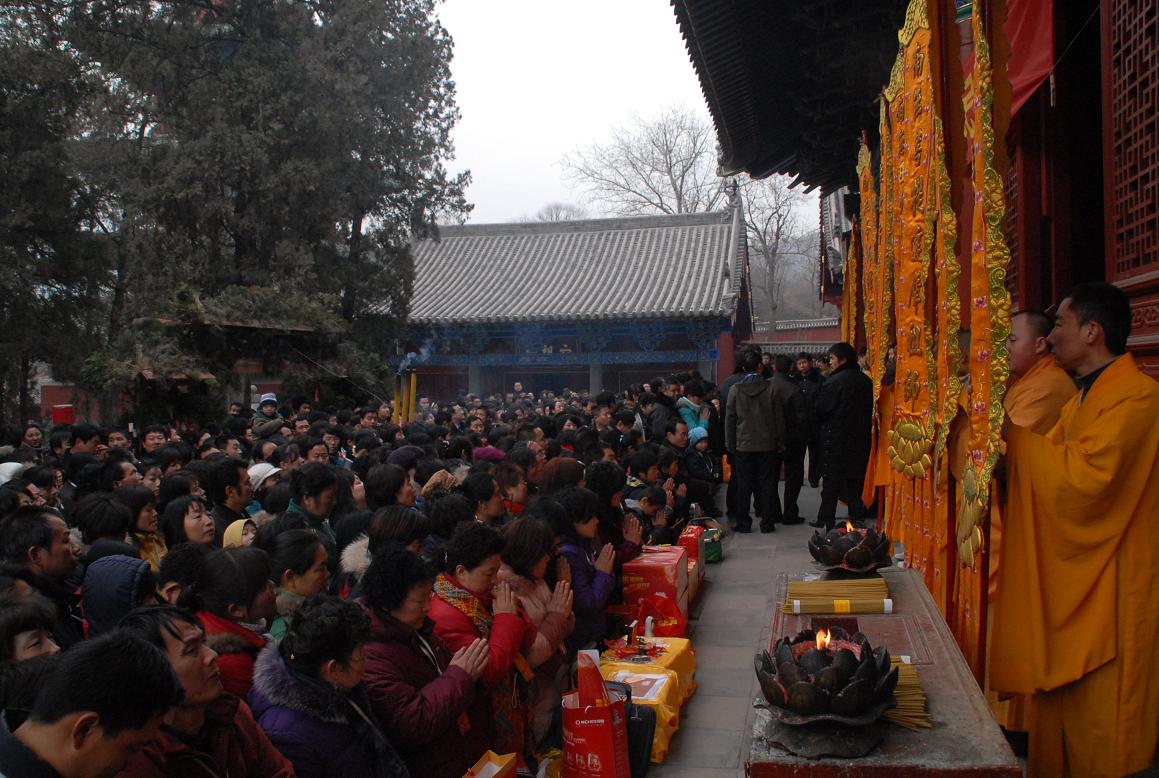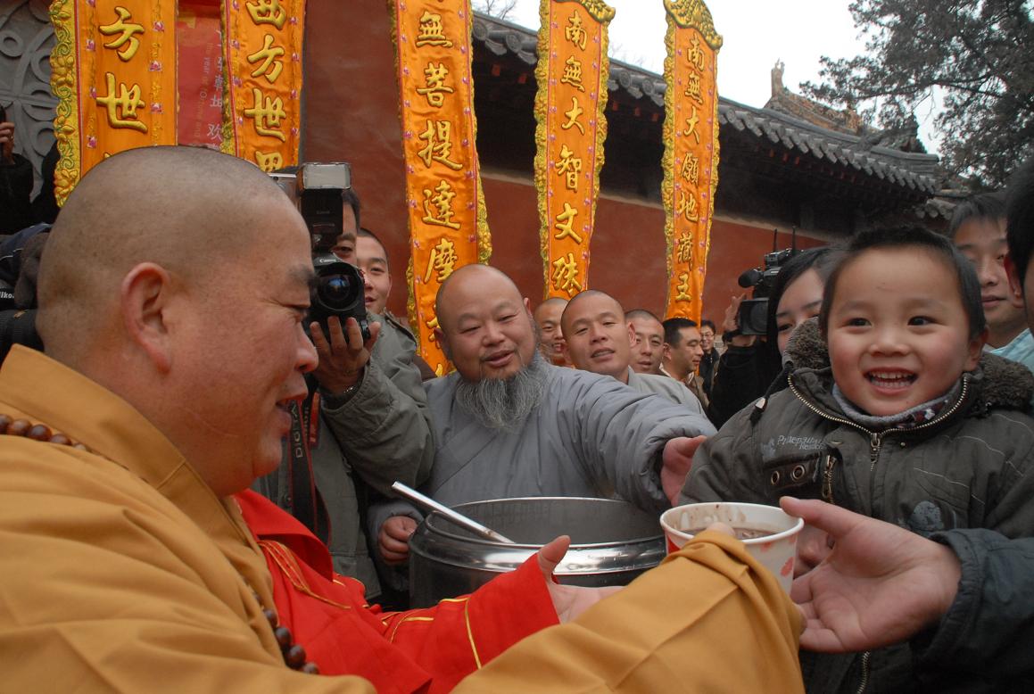 2009元月3日,佛教节庆与传统民俗中重要的腊八节。少林寺方丈提倡“以功夫修身,以慈悲养心”的理念,因而自去年起少林寺就恢复了腊八施粥,今年少林寺依照古方,精心熬制“少林五行腊八粥”免费提供给信徒.