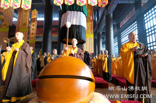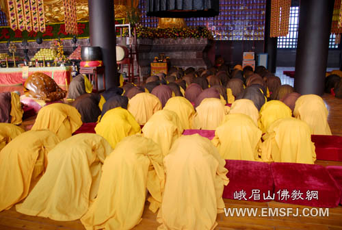 1月2日傍晚,世尊释迦牟尼成道纪念日前夕,四川峨眉山佛学院全体师僧和峨眉山大佛禅院两序大众一起,在大佛禅院大雄宝殿举行了礼拜五十三参洪名宝忏法会,忏除众生罪业,祈祷社会和谐进步,人民幸福安康!
