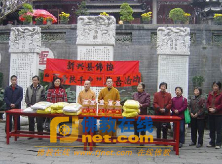 2008年12月30日,广东省云浮市新兴县佛协与新兴县国恩寺联合举办“百寺扶千户”慈善活动。新兴县宗教局领导和新兴县佛协副会长弘昇法师以及新兴佛教徒慰问了新兴县六祖镇的低保户、特困户和困难户,并向其捐赠了钱、粮、油等物资。