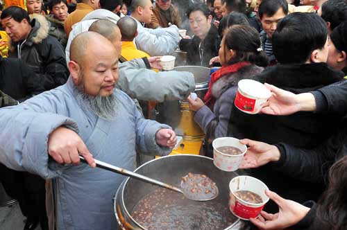 3日是农历腊月初八,入住昆明官渡古镇的少林僧人按照少林传统,为官渡古镇的居民举行了施粥活动。在昨日的施粥活动中,大约有150名寺庙周边的市民品尝到了少林独特的“腊八粥”。