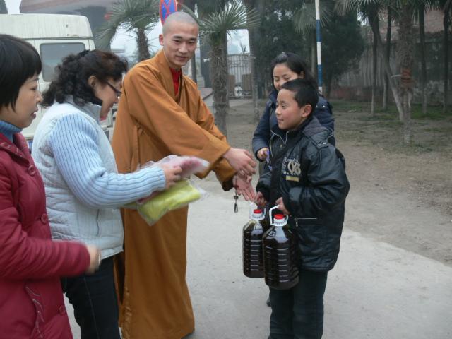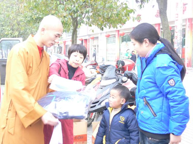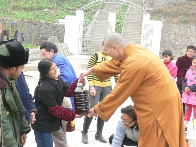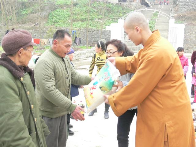 重庆华岩客堂德琛法师正在为老年人发放春节年货
