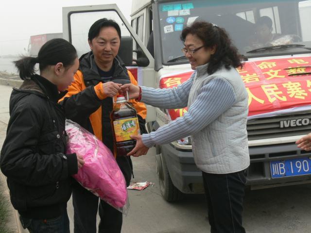 汶川地震后的第一个春节,灾区的人们有冬衣穿吗?有年货过节吗?牵动着重庆华岩文教基金会副理事长闵老师的心,经四川绵阳佛教协会黄玲居士的联系,台湾生命电视台、重庆华岩文教基金会募集的价值10万元物资再次送到了四川灾区,让灾区的民众能顺利度过灾后的第一个春节。台湾生命电视台、重庆华岩文教基金会本着“无缘大慈,同体大悲”的慈悲喜舍精神坚持为地震灾区的恢复重建工作不遗余力。