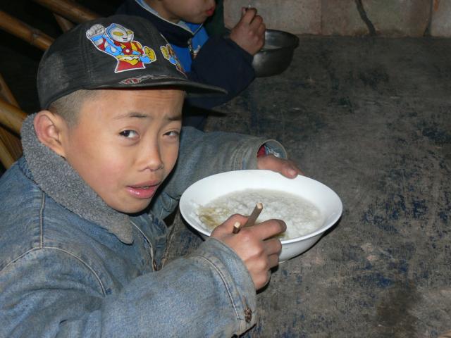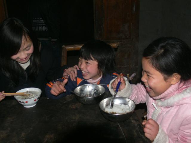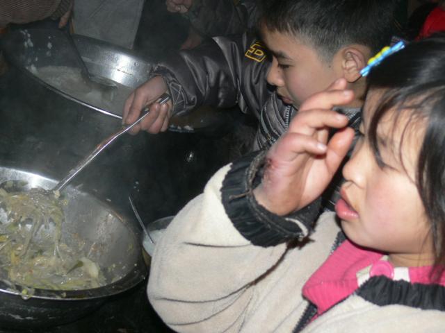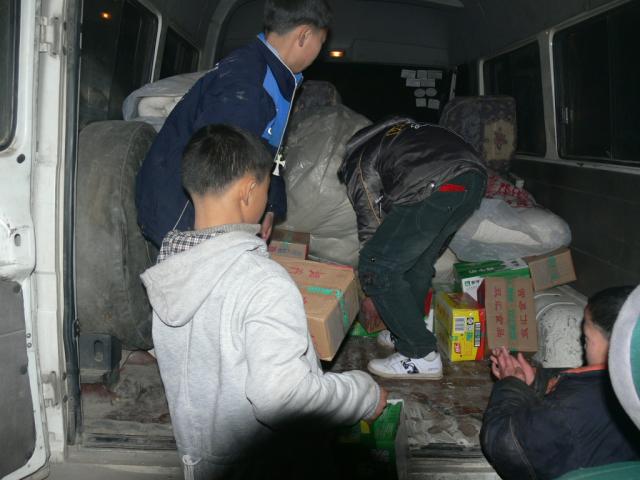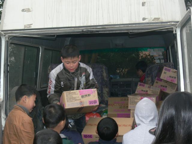 重庆华岩文教基金会副理事长闵老师将过年的新衣和食用油送到灾区的孩子手中