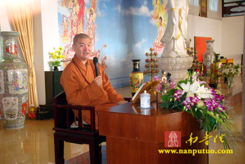 中观法师为参加“第二届‘泉南佛国’之旅佛教文化学佛营”的学员开示