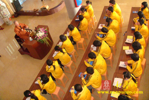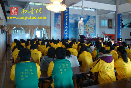 闽南佛学院副教务长中观法师应邀于1月16日至17日,赴晋江南天寺,为参加“第二届‘泉南佛国’之旅佛教文化学佛营”的学员开示。法师于16日下午,为两百多名高级班学员(高中生和大学生)讲授的主题是《生活的佛法——之贪、嗔、痴》。17日上午,法师又为一百多名初级班学员(小学生和初中生)开示,主题是《我应该给予家人的幸福》。