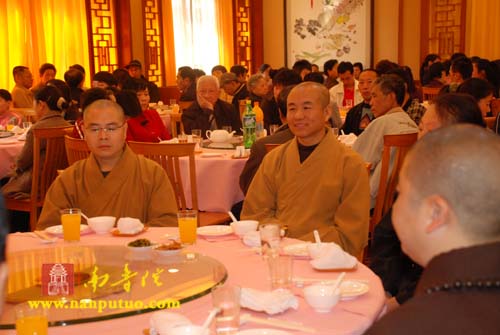 出席新年午餐会的有:全国人大代表、中国佛教协会副会长、厦门南普陀寺慈善会会长圣辉大和尚,厦门市佛教协会会长、南普陀寺方丈则悟大和尚,厦门市慈善总会会长蔡景祥先生,厦门市民政局副局长左慧敏女士,厦门市民族与宗教事务局二处黄处长、钟晓波先生,厦门南普陀寺慈善会顾问申淑芳女士,厦门南普陀寺慈善会常务副会长慧然法师,厦门市佛教协会副会长、南普陀寺监院、南普陀寺慈善会秘书长界象法师,厦门市民政局社团办主任左丽华女士,厦门市慈善总会秘书长蔡宗葛先生,厦门市慈善总会副秘书长杨柳丝女士,厦门南普陀寺慈善会常务副秘书长普陀法师以及来自厦门电视台、厦门晚报社的新闻媒体记者。