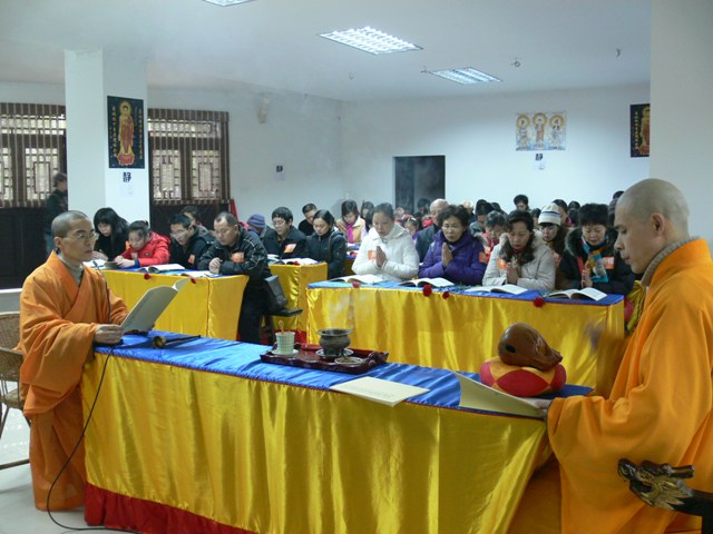 来圣法师带领大家读诵经典