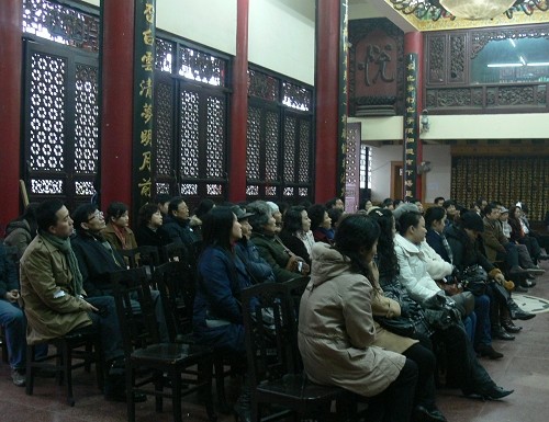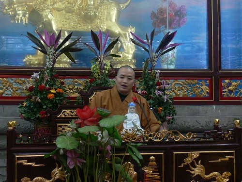 上午九点,重庆华岩寺方丈道坚法师在华岩寺弘法楼般若讲堂内为大家演讲佛学讲座。道坚法师讲到,佛教以修心为主,法师应用自己广博的佛学知识,以举例的方式讲解了如何做到安心、修心和炼心。法师精彩的演讲,赢得了在场听众阵阵热烈的掌声。