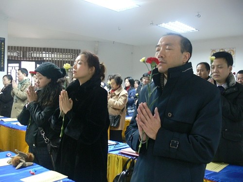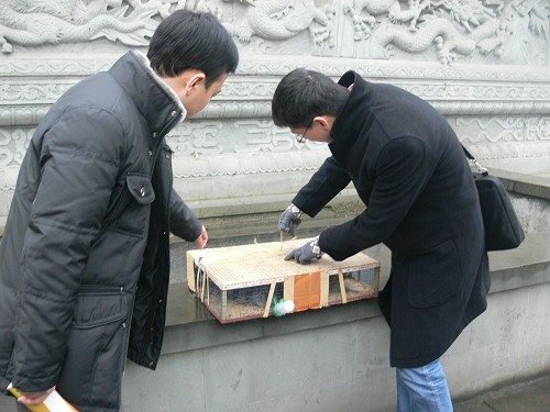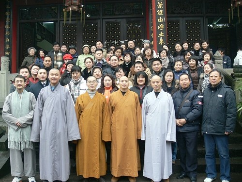 中午十二点,细雨飘落,全体人员在华岩寺天王殿里齐聚,举行了放生法会,跟随着放生仪轨,大家合十祈祷,回向众生,祈愿新年平安吉祥。在小鸟儿自由雀跃地飞向树林的时候,整个祈福活动圆满结束。