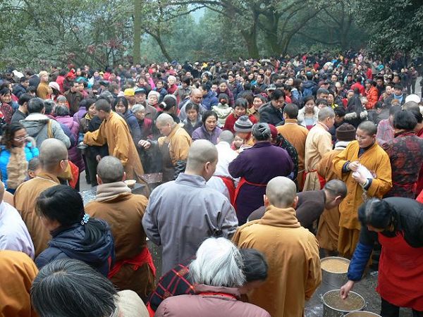 中国佛网讯 2009年1月3日,我国传统的“腊八节”,也是佛教盛大的节日,佛祖释迦牟尼成道的吉日,在这殊胜的日子里,重庆华岩寺隆重举行祈福施粥活动,几万市民及信众随喜参加,法会利益人天,普惠法界。