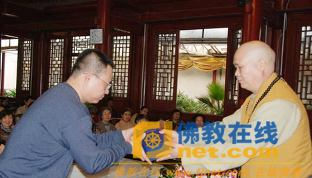 最后,怡学法师亲自为同学颁发结业证书。两期学员代表以献鲜花的方式来表达对怡学法师及所有授课法师的感恩!