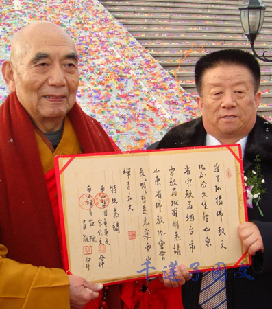 2009年1月1日,山东省佛教协会会长明哲长老率领湛山寺僧众200人到达烟台龙口南山禅寺,接受恭请方丈书。现场举行了盛大的祈祷祝福法会。