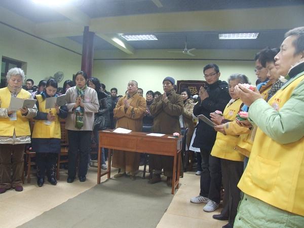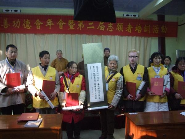 1月2日这天,来自全国各地一百多名志愿者已经从路途的疲惫中恢复了过来,红尘中的烦杂在暮鼓晨钟的寺院氛围中得到了清静。四点半的早课后大家在大雄宝殿前进行合影。八点后,聚集到了慧远祖师殿二楼。这个寒冷冬天的清晨,阳光透过古式的木窗窗棂暖暖地撒在大家身上,古老的寺院由于大家到来焕发出融融的春意。 今天是培训会精彩迭起的一天,首先由东林慈善功德会会长镜义法师作了东林慈善功德会自成立以来至今的工作总结报告,介绍了不到一年来东林慈善功德会为救灾济难所设的各项项目和所作的全部工作。镜义法师回忆了这一年多的历程:为了进一步完善东林寺弘扬佛法的平台建设;为了完成曾经所发的慈悲大愿;为了体恤更多社会底层的贫困和受灾群体,帮助他们离苦得乐,从艰苦创始东林慈善门诊部开始,到在雪灾时步行六个多小时陡峭崎岖的山路去实地勘察房屋倒塌灾情;从组织人员奔赴汶川地震一线实地救灾到居家关怀为一个个苦难的低保户老人安身安心;从东林慈善功德会从开始时缺乏人马日以继夜地工作到目前组织机构建设初步成型,成立了各个职能部门,也完善了平台建设;回忆一年多走过的历程,颇感不堪回首。目前能一呼百应地得到广大爱心人士共同响应参与志愿工作,是完全基于佛教慈悲济世的本怀及阿弥陀佛的慈悲大愿;是离不开东林僧团的全力支持与尊敬的大安法师的指导与鼓励,更是由于社会大众的爱心。这也证明了我国社会的文明程度与的道德素质的日益提高。 接下来是对年度十位优秀志愿者的表彰活动,由东林寺首座和尚上本下通法师及监院上道下元法师为优秀志愿者颁发荣誉证书。这十位优秀志愿者一直以“不为自己求安乐,但为众生得离苦”为行愿,以无我忘私为守职,闻声救苦,尽心尽职,任劳任怨,默默无闻地穿梭在第一线,精进地履践大乘菩萨道的精神,给最贫困最苦难的社会群体及时送去生活及心灵的温暖。在这一年,谱写了无数感人至深的诗章。今天聚集一堂,交流彼此心得,并由东林寺给予崇高的荣誉。他们在最平凡中体现了伟大,以实际行为向社会昭示了东林慈善功德会秉承的大乘佛法寻声救苦,普度众生的精神。 全国各地的志愿者中相当部分都具有相当高的文化素质,有大学教授,有医生,有已多年从事慈善事业多年,为了共同理念聚集在一起,在下午的交流讨论会中,大家为东林慈善功德会未来发展积极踊跃地发言,提出了许多精彩的发展思路和建议。他们的建议中最集中的是作为慈善事业,财务的公信力是最关键的问题。镜义法师对所有提出的问题一一作了圆满的回答。东林慈善功德会是以东林僧团为指导,以居士群体为核心,以志愿者为基础,在这个诸上善人聚集一起的温暖的大家庭在今后的发展中更需要广谏良言,充分发挥每一分子的积极主动性,以每位成员的爱心去点燃更多人心中的火焰,燃烧成熊熊大火。从而推动人人行善的社会风尚,使我们东林慈善所及,家家得温暖,处处得安康。 最精彩的时刻莫过于晚上的志愿者联谊会,从六点到八点半,来自全国的志愿者纷纷献出了自己最好的节目,其中有手语歌,古筝独奏,太极拳表演,相声,小品,还有陕西联络处的三句半表演等十四个节目。晚会的气氛十分热烈,不时传来阵阵欢笑,精彩的节目引来大家不住地赞叹,从各个节目中,也得到了许多佛法的启发。让在场每一位都法喜充满。《经》云:“琵琶铙铜钹,箫管琴箜篌,如是供养佛,皆共成佛道”。 最后每个人点燃了的一盏莲花灯,在《燃灯之歌》的歌声中晚会落下了帷幕。从清风明月的院子出来,寺院的钟声从远到近响彻在寂静安详的夜色中,在大家幸福快乐的心情中,共同期待明天的精彩…… 镜义法师作年终总结报告 给优秀志愿者颁发荣誉证书 镜义法师主持志愿者讨论 共商功德会发展,志愿者发言 共商功德会发展,志愿者发言 志愿者联谊会上大家齐唱《三宝歌》 志愿者表演手语歌《爱的奉献》 道元法师和镜义法师在观看节目 志愿者表演古筝独奏《渔舟唱晚》 陕西联络处志愿者表演节目三句半 志愿者在表演太极拳 相声表演《初入佛门》 惠州志愿者表演舞蹈《感恩的心》 诗朗诵《我心中的东林慈善》 合唱《是心做佛祖》 居家关怀小品《菩萨在人间》 道元法师为大家清唱《稽首皈依大觉尊赞》 东林慈善门诊部工作人员合唱《观音菩萨在心中》 四川志愿者临时为大家编排了一曲动人的合唱表示对东林慈善的感恩 晚会结尾和法师一起点燃莲花灯 全体志愿者合影 东林慈善网址:http://www.donglincs.org/