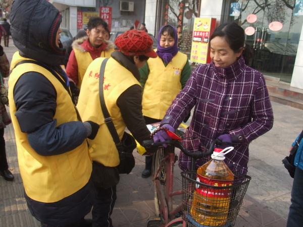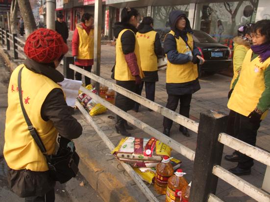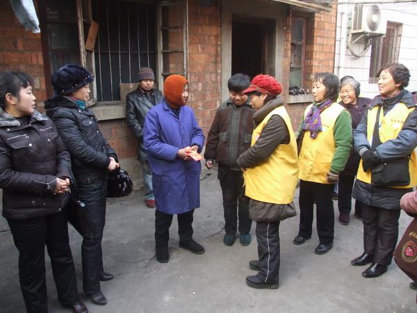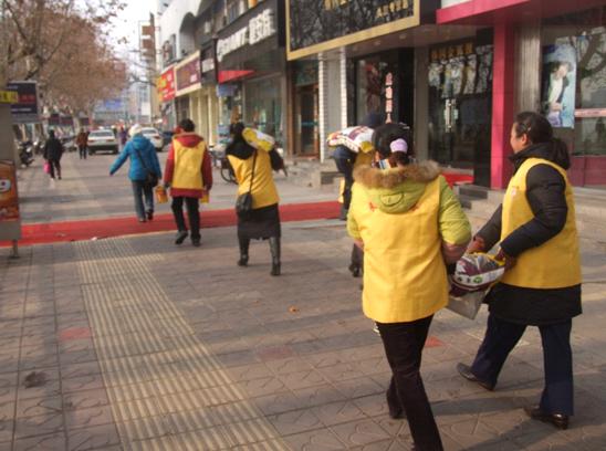 志愿者小组在大街上集中,然后分成小组一家一家送