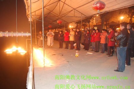 2008年12月31日晚上,河南省南阳市白河岸边举行了放河灯超度亡灵法会。清泉寺住持印生法师主法。