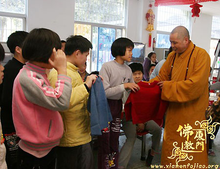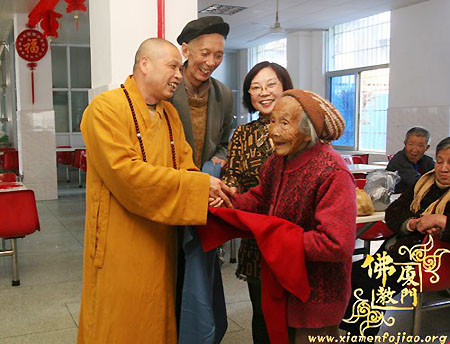 福建厦门观音寺为福利院儿童和老人送毛衣