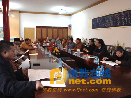 会上,山西省委统战部、省宗教局领导首先对各位法师的到来表示亲切的问候。随后根通长老就山西省佛协2008年工作情况作了简要回顾;国亮法师传达了胡锦涛主席在纪念党的十一届三中全会召开30周年大会上的重要讲话;章样摩兰副会长汇报了省佛协2008年工作总结和2009年工作要点;胡晨光处长通报了国家宗教局、住房和城乡建设部、国家安全生产监督管理总局《关于加强宗教活动场所建设工程安全监管工作的通知》,以及国家宗教局和省宗教局《关于做好宗教活动场所防火及安全工作的通知》。