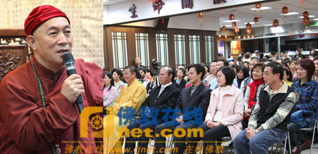 活动除了心道法师开示之外,还精心设计了许多与会众互动的节目,包括喜神和财神散发“金玉满怀”糖果,树林中心小菩萨班的欢喜赞歌,还有颁赠护持圣山计划的菩提功德主的珠玉宝石。这场聚会以联欢交谊开始,在好乐向法的气氛中结束。