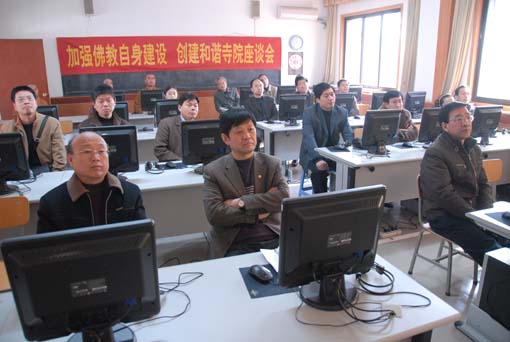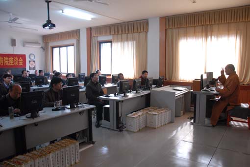 随后,马局长一行参观了大雄宝殿、法堂、斋堂和佛学院自习室及多媒体教室,观看了大型纪录片《法门寺》,贤空法师并向马局长一行讲解了佛教知识,赠送《和尚博客》、《法门之光》等有关书籍。