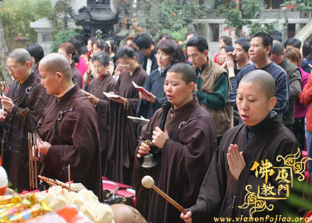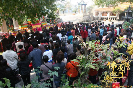 2009年2月3日上午7点半,福建省厦门市万石岩寺供佛斋天祈福法会在大雄宝殿前举行。万石岩寺监院向佛法师主法,老当家开因姑司鼓,僧众、善信近200余人参加了此次法会。共同为祖国繁荣昌盛、社会和谐发展、众善信阖家吉祥祈福。