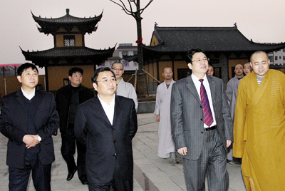 他们在能仁寺监院中峰法师引领下,先后参观了天王殿、钟楼、妙通塔、大雄宝殿等主体建筑,对能仁寺的复建工作深表赞赏,并希望在加强硬体建设的同时,加大保护和抢救历史遗产的力度,不断提升文化品位,更好地服务社会。