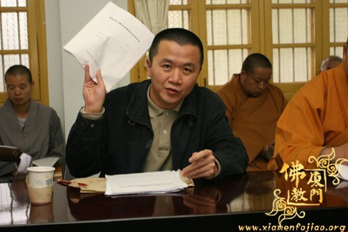 会上,市佛协会长、南普陀寺方丈则悟大和尚作指导思想,要求全市上下要高度重视,积极配合,按要求、按时的做好2009年厦门寺院换证工作,以此好因缘做契机,把自己寺庙的档案进行整理、规范,配合换证工作,提高规范管理。并宣布成立市佛教寺院换证工作领导小组,服务、指导全市寺院做好换证工作。市佛协副会长法云法师传达了“厦门市宗教活动场所换证工作会议”精神。市民宗局一处黄斯坚向与会人员详细的介绍了表格填写情况。