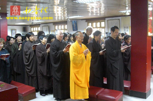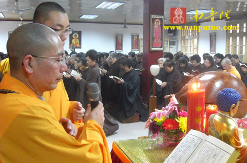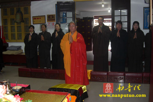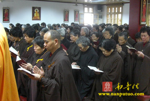 2009年2月8日(农历正月十四)上午7时30分,南普陀寺2009年度第一次八关斋戒法会在南普陀寺念佛堂隆重举行,礼请我寺首座了法法师担任戒和尚,数百名信众参加受持,场面庄严隆重,殊胜圆满。