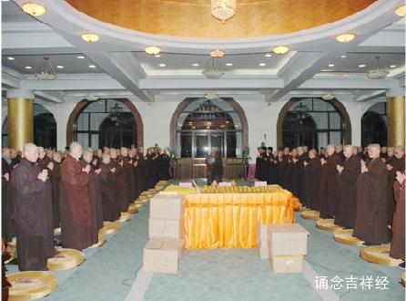 除夕,普寿寺全体大众在法堂举行传灯法会。