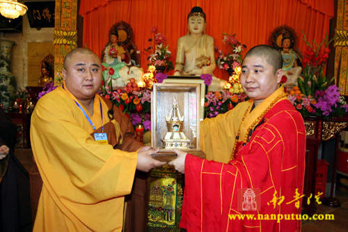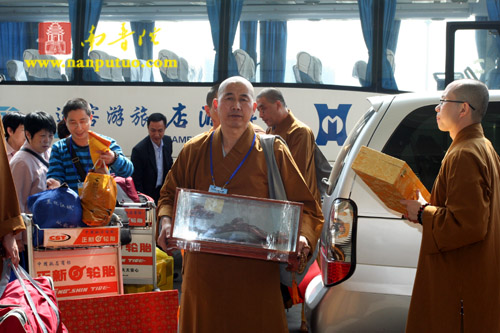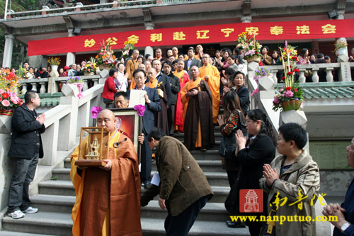 妙老舍利珍贵难得,为让妙公精神在他老人家的故乡弘传,今我寺同意分移妙老部分舍利赴辽宁供大众瞻仰礼拜。法会之后,南普陀寺众位执事穿袍搭衣一路护送妙老舍利至厦门高崎机场。
