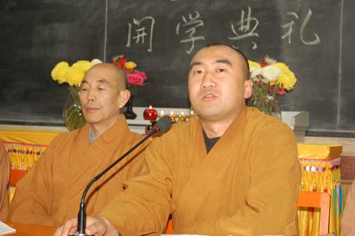 副教务长果清法师主持典礼,副院长智超法师首先开示:“他指出学僧应认识修学的重要性,下决心在解、行上下功夫,再新学期取得新成绩”。随后,其他法师和老师也对学僧们表示了新学期的祝福和希望。