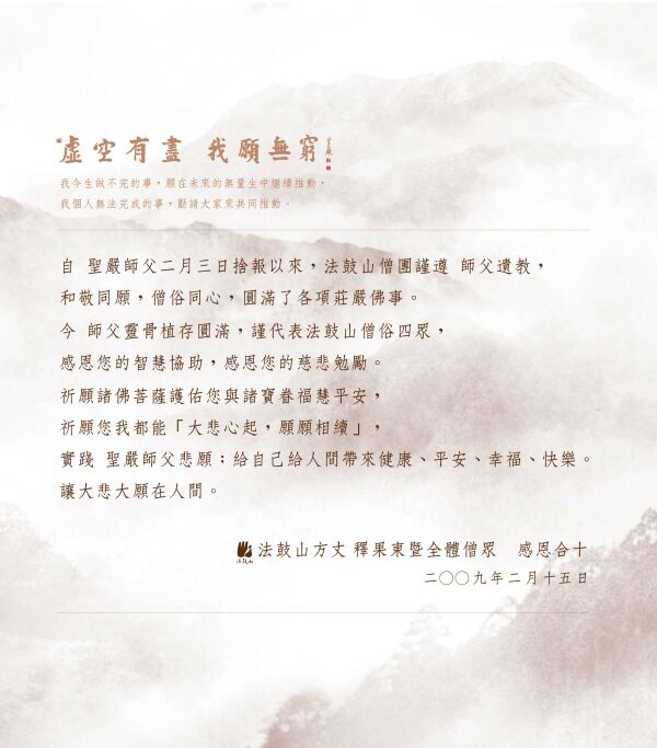 圣严法师佛事圆满法鼓山僧团感恩社会大众的护持与协助