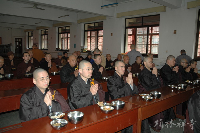 参访期间,他们和寺院常住大众一起上殿、坐禅、过堂。23日,他们在禅堂和佛学院学僧按禅七作息时间体验了全日的禅修生活。24日上午,寺院安排体验团出坡劳动。之后,在佛学院和师生们分享了修行心得;中午,并为大众做饭、行堂。
