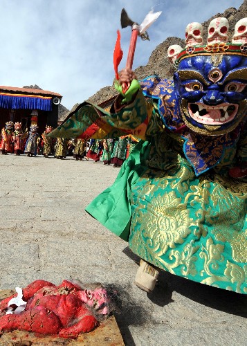 当日,距拉萨70多公里的噶举派寺庙楚布寺举行一年一度的跳神活动金刚神舞。