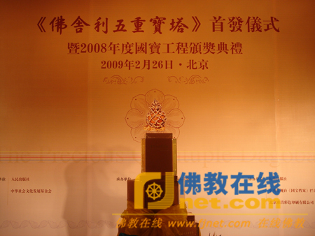 《佛舍利五重宝塔》首发仪式上还举办了2008年度国宝工程颁奖典礼,向为佛舍利五重宝塔回归、研究、出版等做出贡献专家学者和单位等颁发了“国宝工程学术贡献奖”和“国宝工程公益奉献奖”。