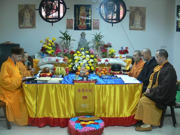 过堂后,全体人员在华岩寺天王殿里举行了放生法会,跟随着放生仪轨,大家合十祈祷,回向众生,祈新年吉祥、万事顺利。