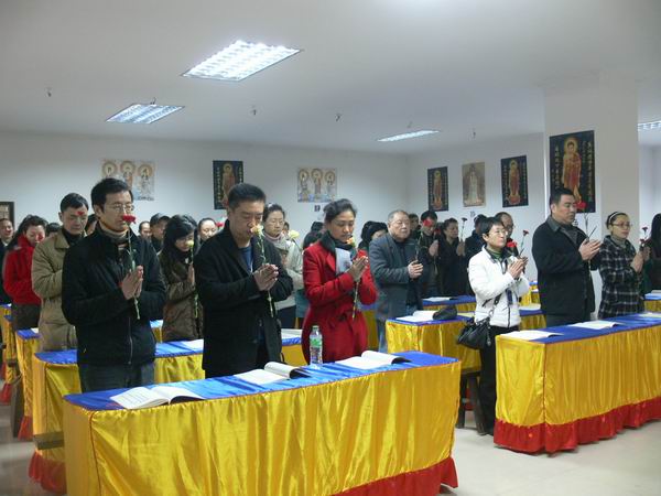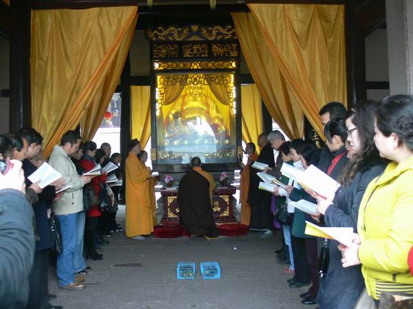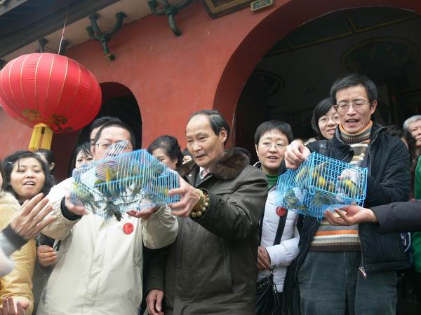 中国佛网讯 2009年2月6日 重庆时报携同民生银行近70名客户前来重庆华岩寺听佛学讲座、放生及诵经等活动。