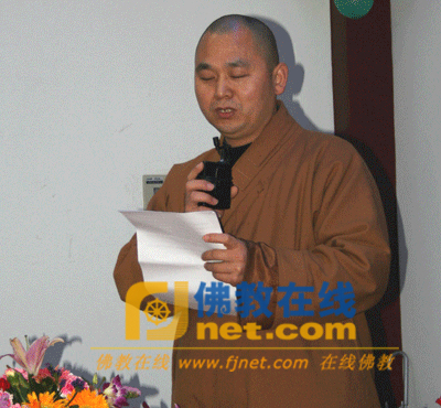 中国学院栖霞山分院院长明学长老由身体欠安和天气原因,未能来到现场,首先,我代表院长对各级领导、专家学者和各位法师的到来表示热烈的欢迎。并对长期以来关心和支持中国佛学院栖霞山分院建设和教育的各级领导、 学者、法师们表示衷心的感谢。非常感谢各位能够远道而来,出席此次“三论宗研究所”的揭牌仪式。