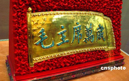 2009年2月25日,在北京民族文化宫举办的“西藏民主改革50年大型展览”展出了十世班禅额尔德尼献给毛泽东主席的“毛主席万岁”金盾。