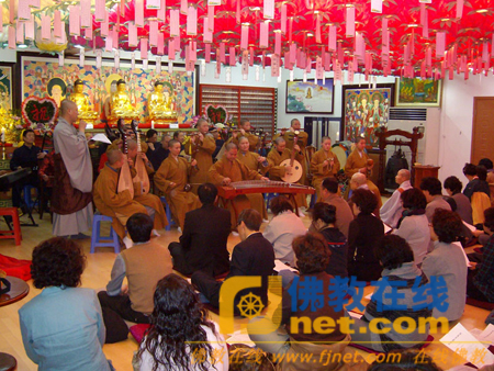 荐福观音寺的法师们表演了精彩的器乐合奏、独唱,赢得了韩国法师及信众的热烈掌声。