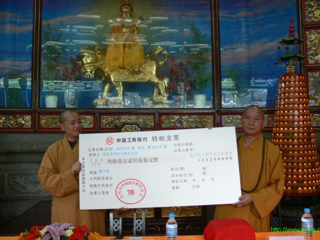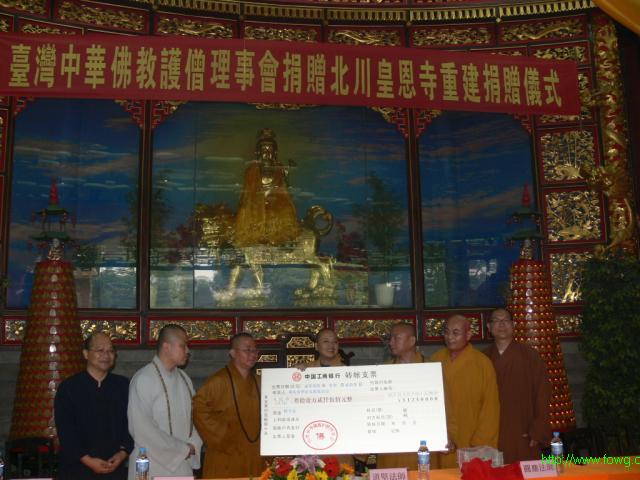 台湾中华佛教护僧理事会捐赠四川省北川县皇恩寺重建捐赠仪式于重庆市华岩寺重举行