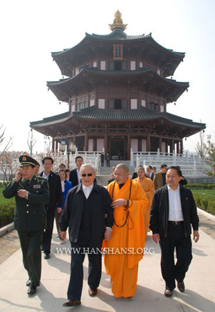 原国防部部长迟浩田上将一行视察苏州寒山寺