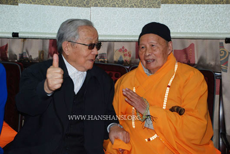 在方丈室,迟浩田上将与寒山寺法主性空长老进行了亲切交谈,并应邀挥毫地为寒山寺大钟楼题字:“时闻清音”。迟浩田上将表示,希望寒山寺继续为发扬中华文化及佛教文化、为开展社会慈善事业,为共建和谐社会作出更大贡献。