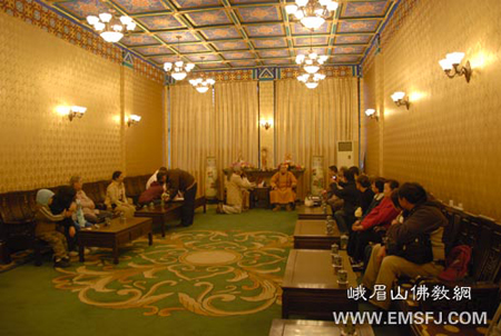在峨眉山佛教协会副会长心定法师的陪同下,丽善郡主一行参访朝拜了峨眉山大佛禅院,受到了峨眉山佛教协会会长永寿法师、大佛禅院监院常性法师等的热情接待,双方并在东花园接待室进行了亲切友好的座谈交流。