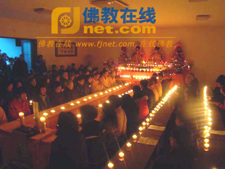 2009年2月25日晚,河北霸州龙泉禅寺举行供灯法会。