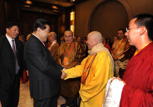 在会见外国佛教界代表时,贾庆林首先介绍了中国应对国际金融危机、保持经济平稳较快发展的情况与中国宗教的基本情况和宗教政策。他指出,中国是个多宗教的国家。中国实行宗教信仰自由政策,是维护人民利益、尊重和保护人权的重要体现。在中国,信教群众是建设中国特色社会主义的积极力量。中国政府鼓励和支持宗教界在独立自主、平等友好、相互尊重的基础上,积极与世界各国宗教界进行友好交往和学术文化交流活动。贾庆林强调,佛教是世界三大宗教之一,在促进人类和平与发展的崇高事业中,应该而且能够发挥积极的作用。中国政府将一如既往地支持中国佛教界利用世界佛教论坛等形式,与世界各国佛教界加强交往,共同促进人类文明进步,维护世界和平,增进人类福祉。