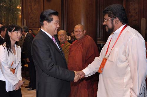 这是贾庆林与中外代表合影。新华社记者 马占成 摄